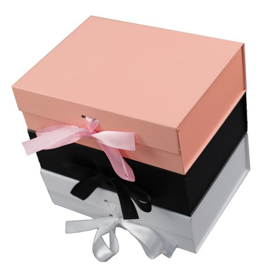 Collapsible Magnetic Gift Box Rigid Cardboard Custom Logo Recyclable Ribbon Decor MOQ 100pcs for Gift Packaging