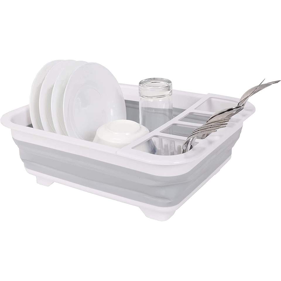 Collapsible Plastic Dish Rack in 3 Colors for Dinnerware Storage