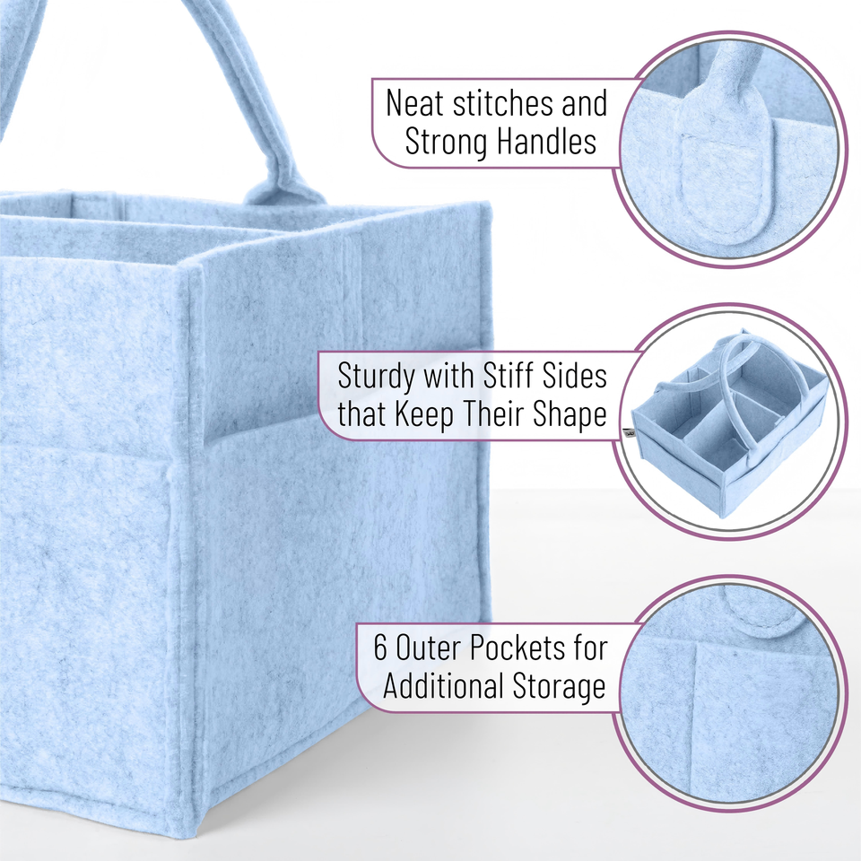 Collapsible & Portable Baby Diaper Caddy Organizer Sky Blue Felt Baby Caddy Organizer with Handle