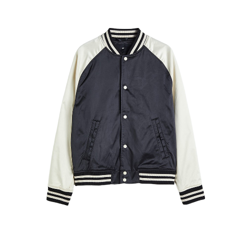 New Arrival Coated Formal Letterman Button Down Bomber Jacket Custom Made Black and Gold Satin Front Logo Unisex