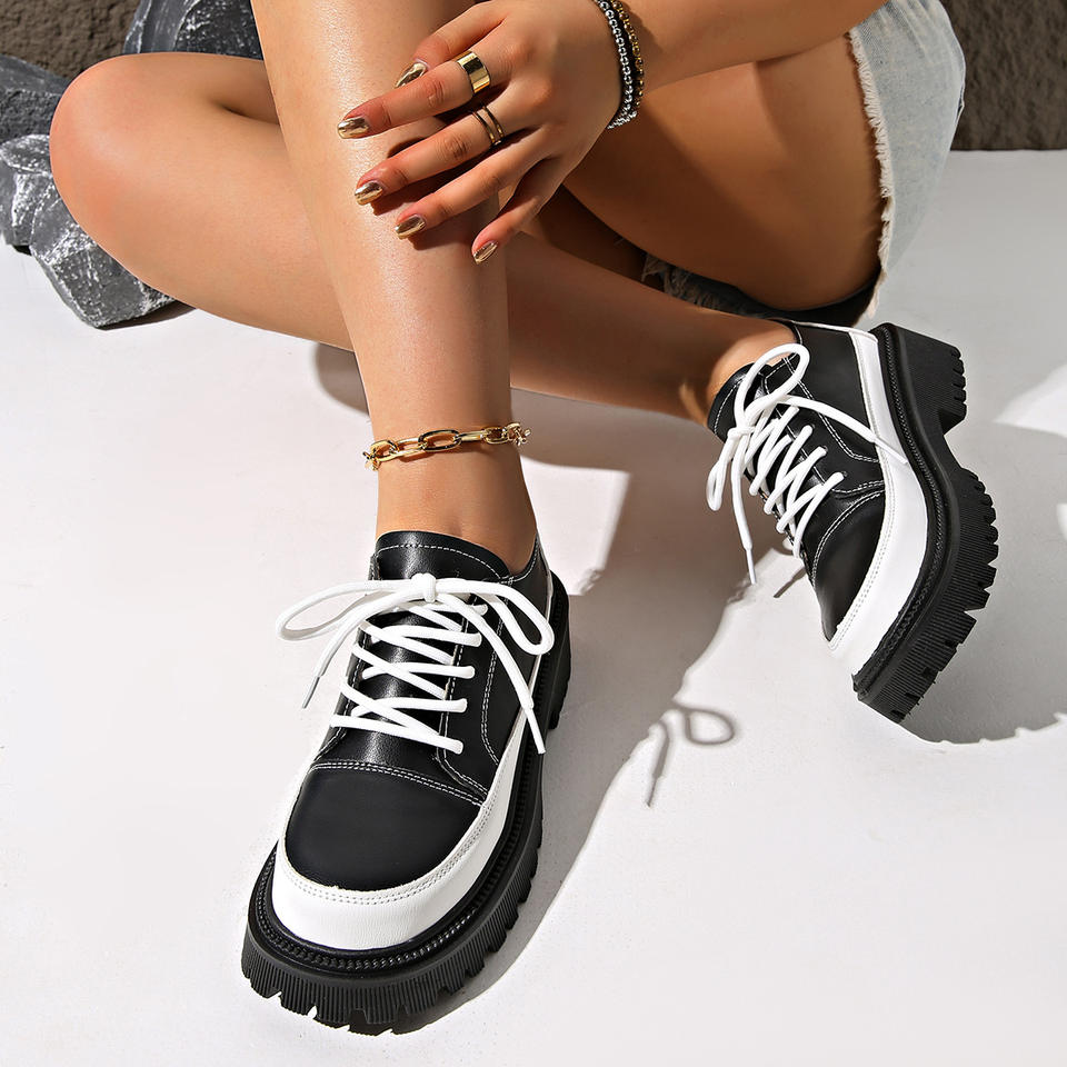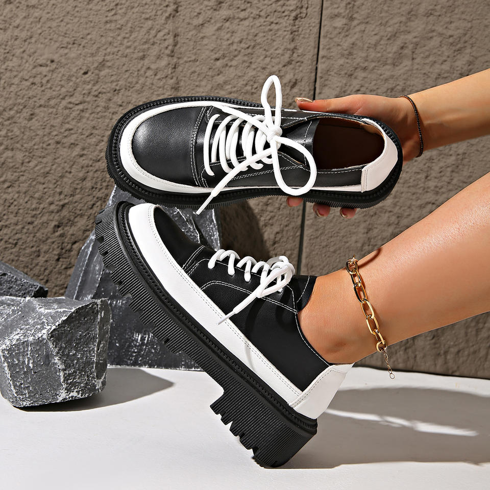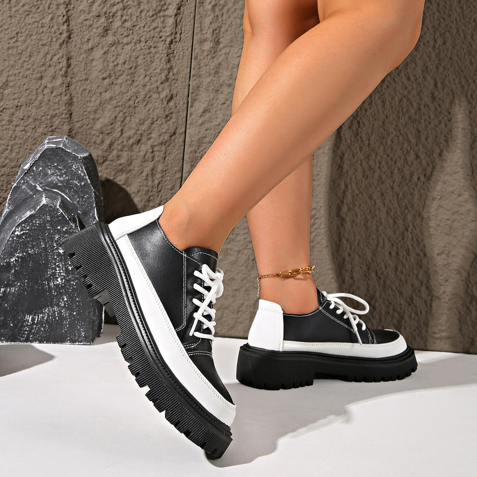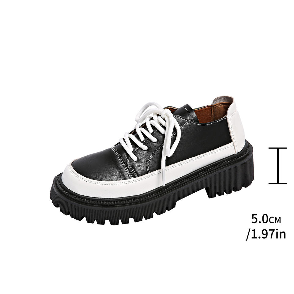Color Block Autumn British Style Thick Heel Low Ankle Flats New Arrival Plus Size Tie Back Retro Small Leather Shoes