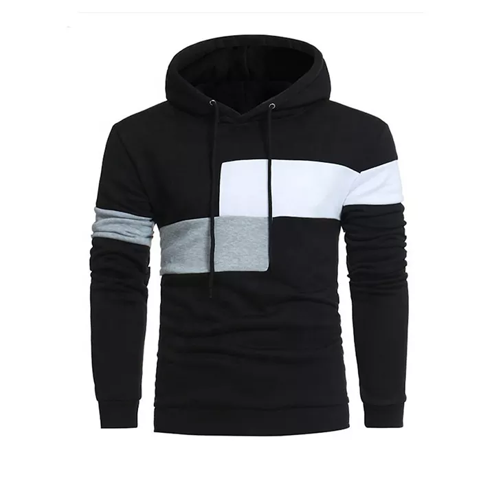 Color Block Hoodie Black White Gray Unisex Pullover Casual Streetwear Cotton Fleece OEM ODM Custom Logo Sweatshirt