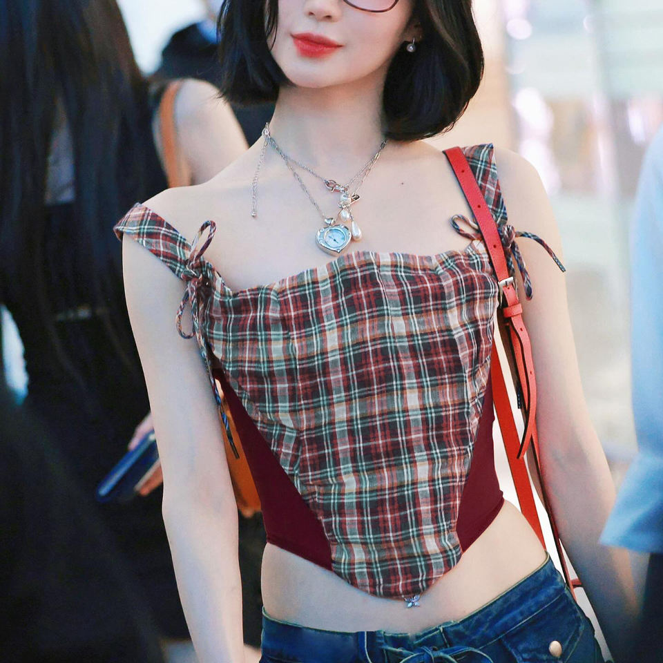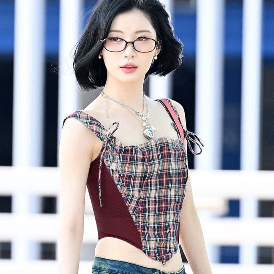 Color Block Plaid Mesh Patchwork Camisole Crop Top Women Spaghetti Strap Slim Fit Y2K Retro Casual Versatile Summer Top