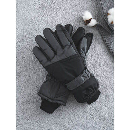 Color Block Winter Ski Gloves Heated Leather and Nylon Gloves for Snowboarding Outdoor Activity Comfortable and Stylish