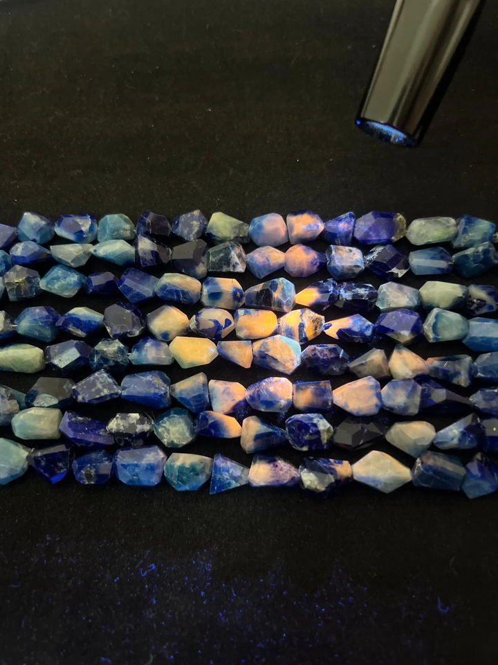 Color Change Afghanite 8x9mm-10x12mm Faceted Nugget Beads Natural Fluorescent UV Reactive Gemstone Loose Step Cut Tumbled Beads