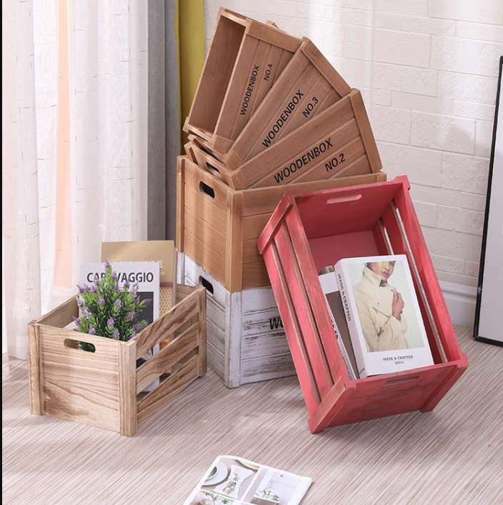 Color Painted Gift Customized Home Deco Rustic Wooden Crate Box Pallet Large Cheap Wood Wholesale Box
