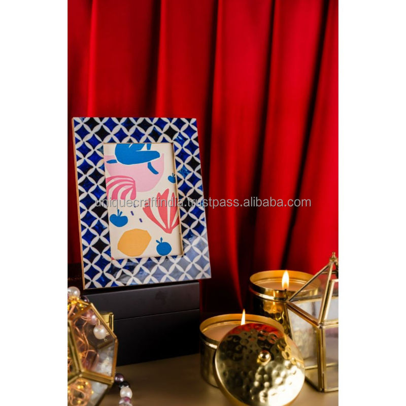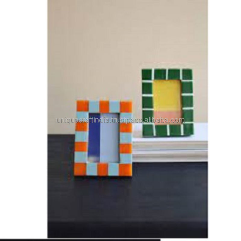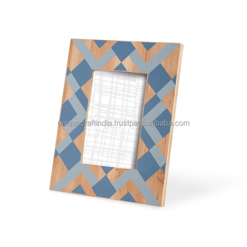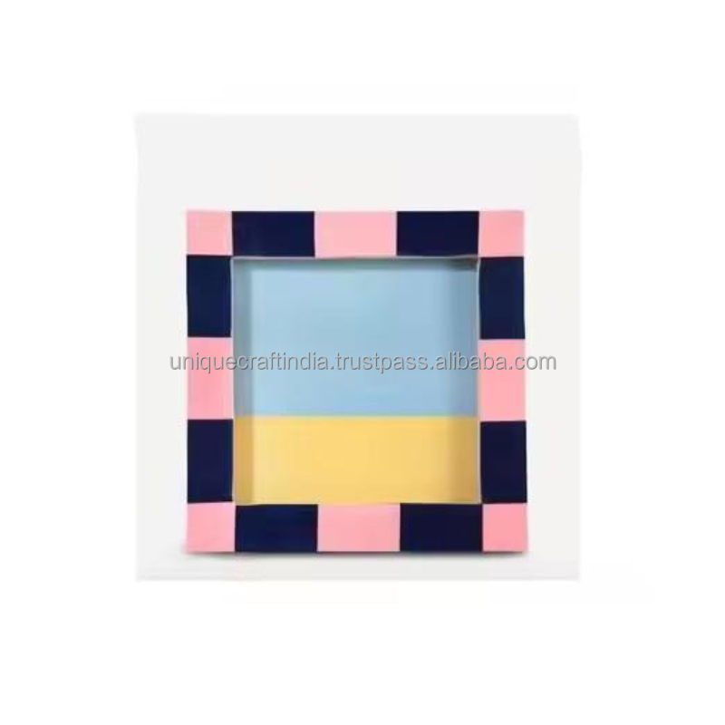 Color block wooden photo frame with resin inlays handmade modern picture frame for artistic home decor display