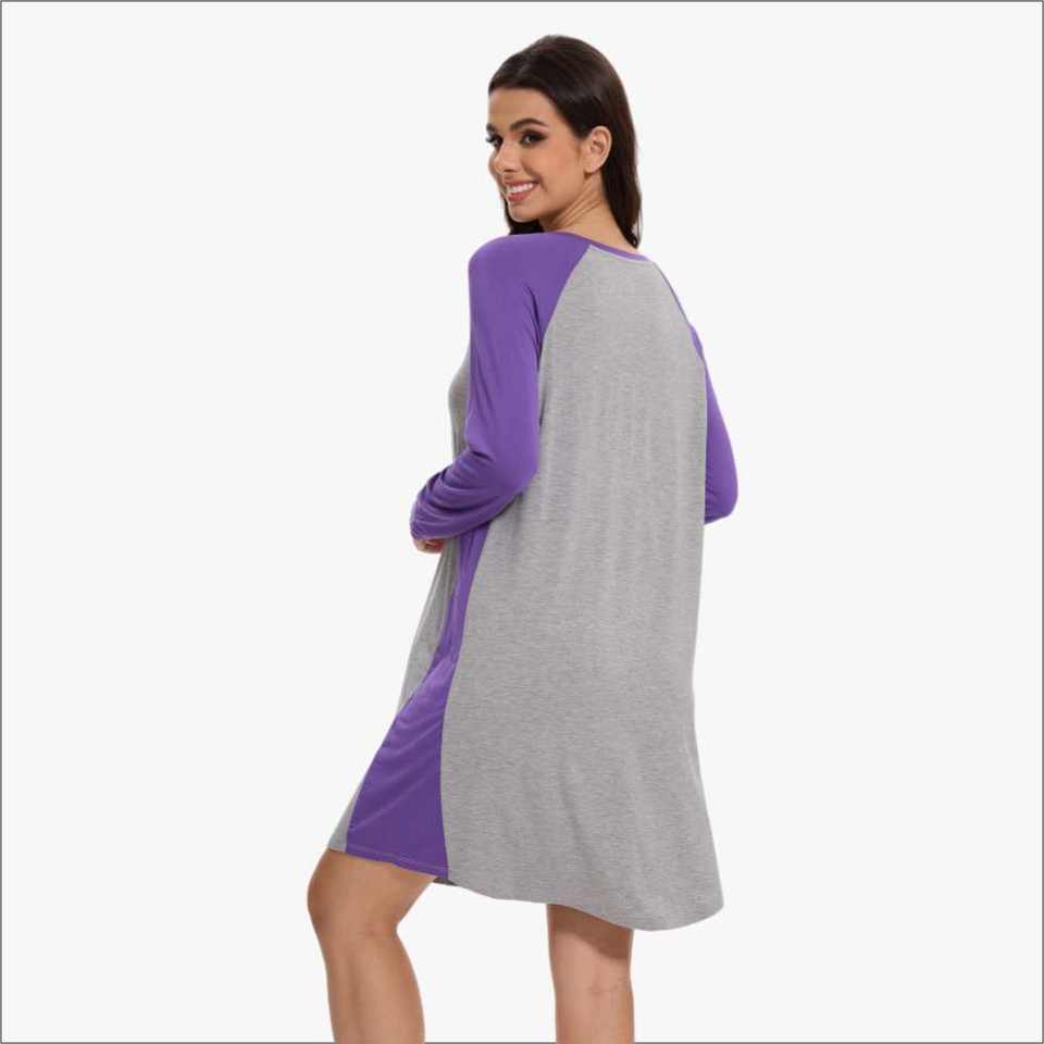 Color-blocked Nightgown For Women Comfortable Bamboo Nightgown Women Sleepwear Loungwear Night Dress Wholesale