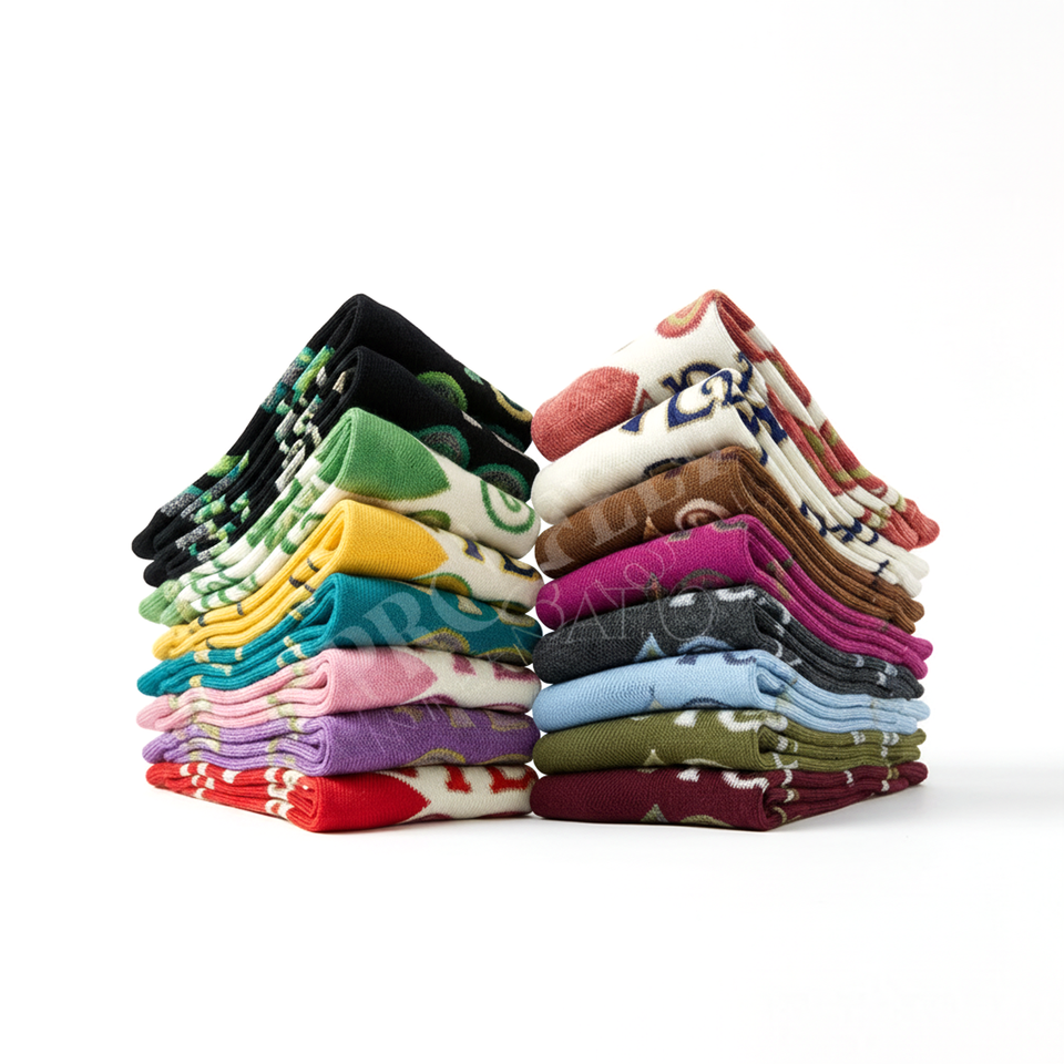 Colorful Artistic Pattern Crew Athletic Socks for Women Soft Comfortable Fashion Printed Casual Socks with Swirl and Leaf Design