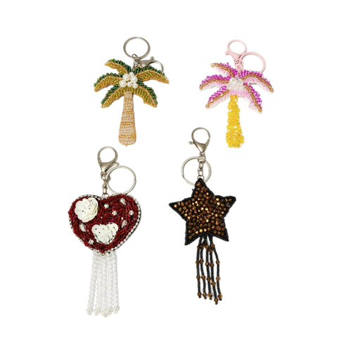 Colorful Bead Embroidery Keychain Unique Designer Portable Key Holder Charm Handcrafted by Artisan for Travel Bags