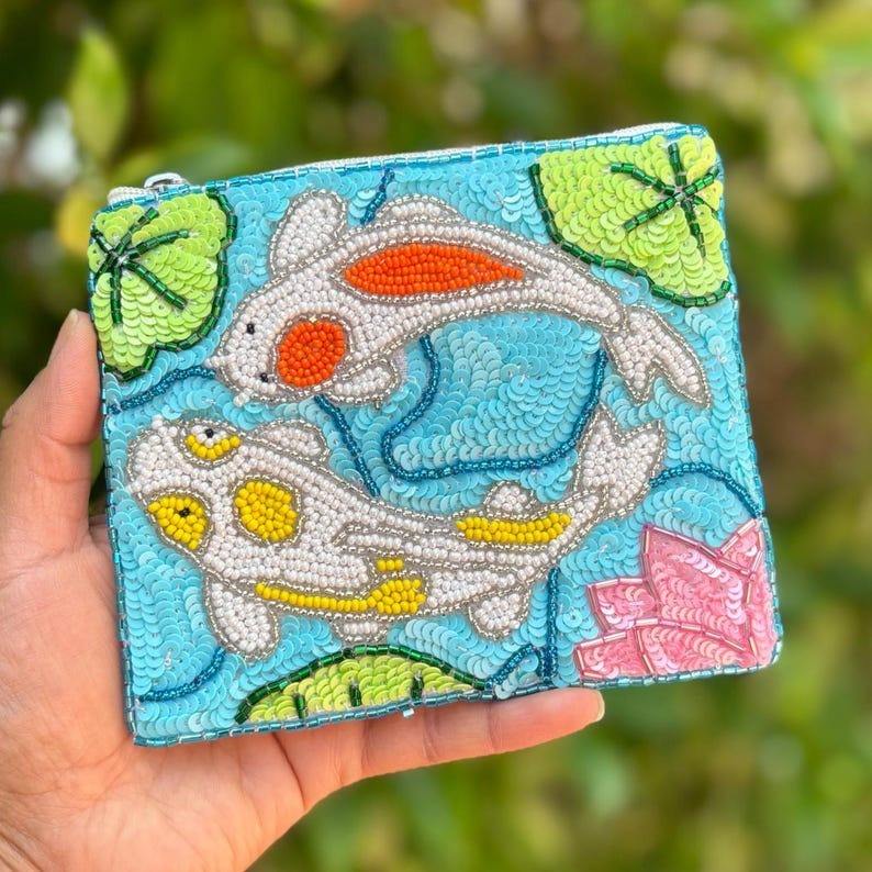 Colorful Beaded Embroidery Coin Pouch For Fashion Use Custom Size Beaded Embroidery Coin Purse With Lining by glowin fashion