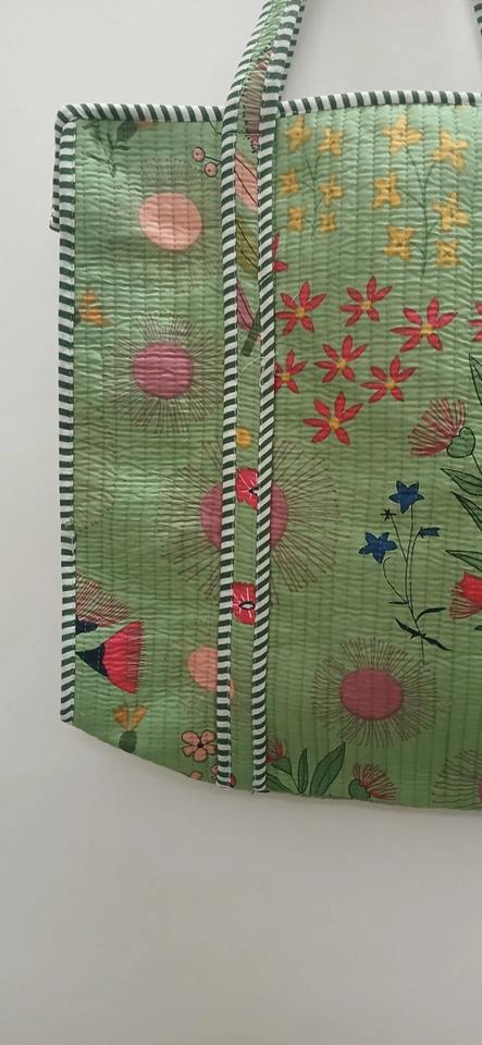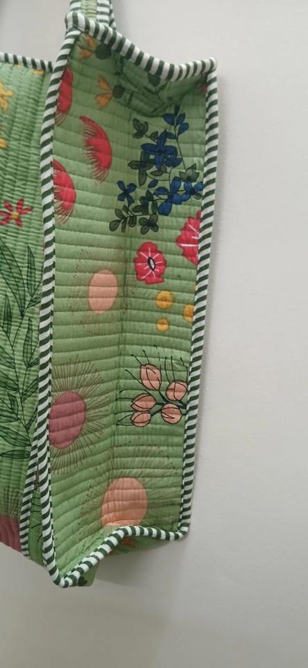 Colorful Block Print Cotton Quilted Vintage Fashion Women's Handmade Indian Artisan Design Eco-Friendly Versatile Canvas Tote