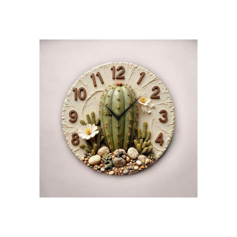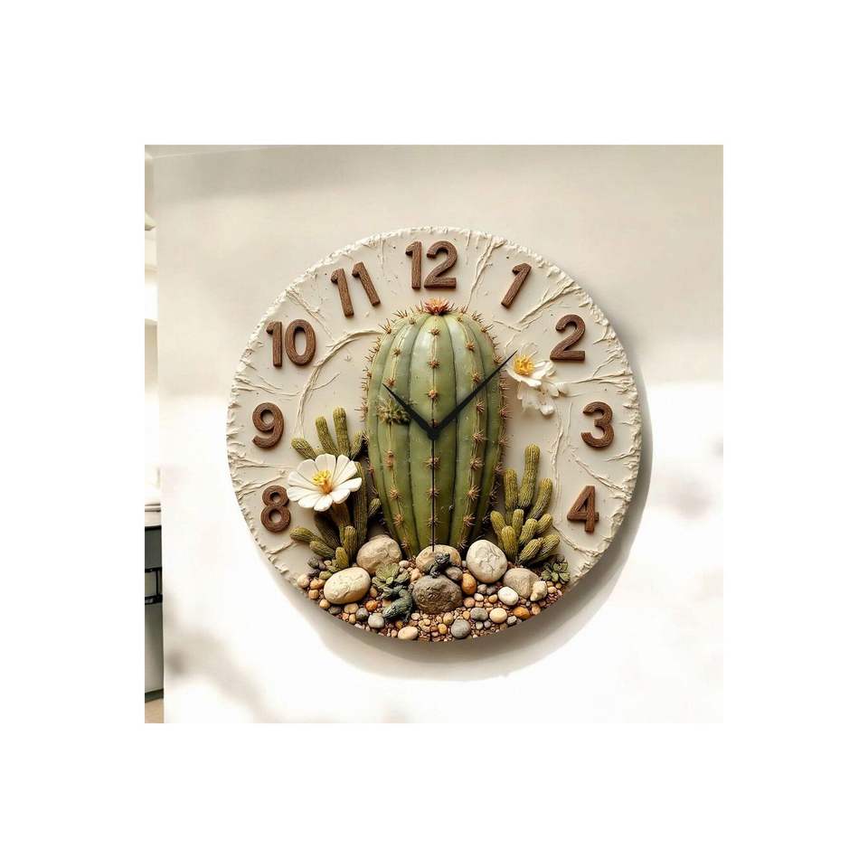 Colorful Cactus Plant Patterned Wooden Silent Table Wall Clock 50cm Perfect Gift Idea