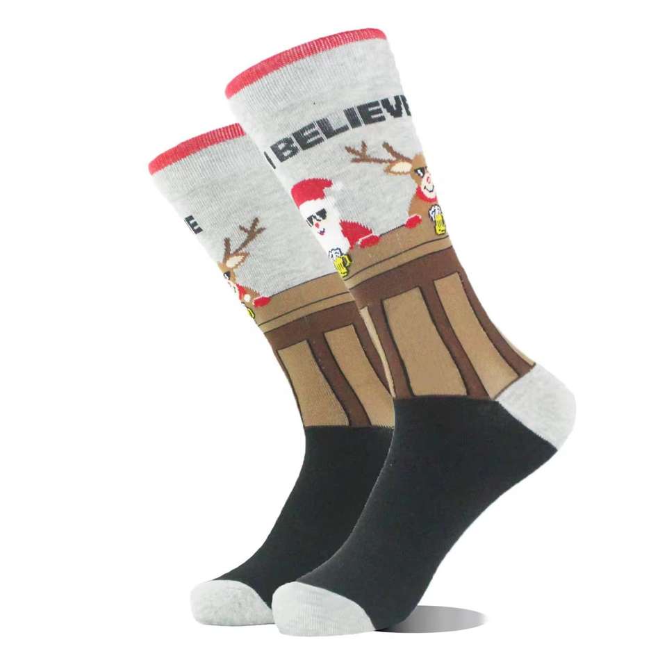 Colorful Christmas Crew Winter Socks | Cozy Cotton Fabric Solid Pattern Cuff Logo Home Decoration Holiday Gift Family