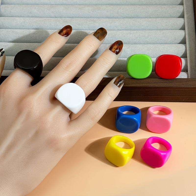 Colorful Chunky Resin Dome Rings Set Bold Acrylic Finger Bands Retro Statement Jewelry for Women and Girls