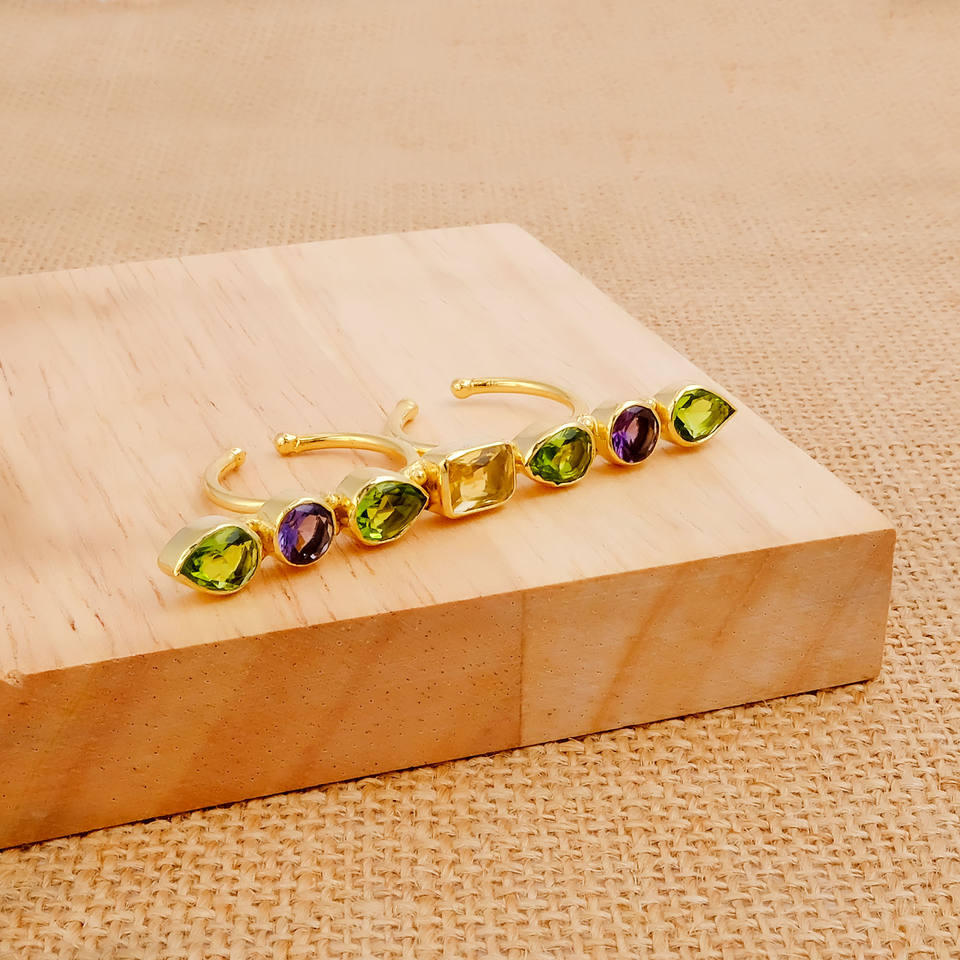 Colorful Citrine Peridot Amethyst Adjustable Gold Plated Handmade Multi-Stone Ring Boho Birthstone for Women Trendy Brass