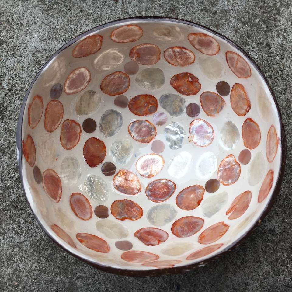 Colorful Coconut Shell Bowl Food-Safe Lacquerware with Animal Style Mosaic Made in Vietnam Egg-Shaped Seashell Decor