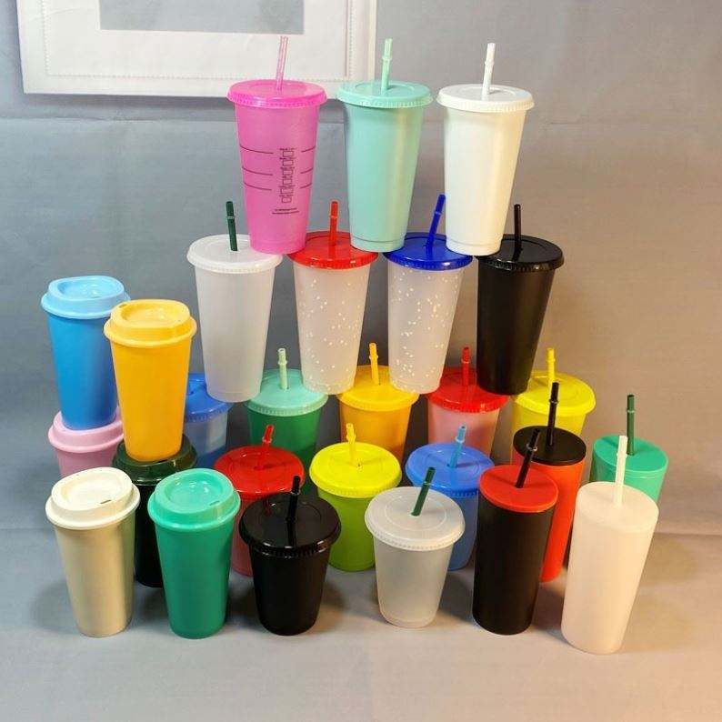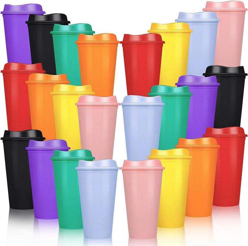 Colorful Cold Cup BPA-Free Plastic Tumbler Coffee Go Mug Lid for Parties Adults Direct Drinking Leak-Proof Straw-Type Outdoor