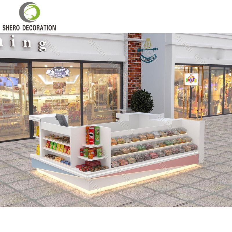 Colorful Commercial Retail Boutiques Retail Candy Kiosk for Sale Candy Display Racks for Food Kiosk Design