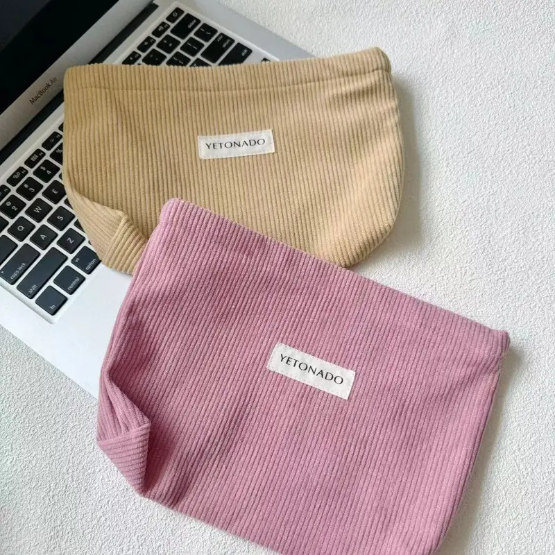 Colorful Corduroy Cosmetic Bag Pencil Case Makeup Storage Pouch Clutch Bag for Women Custom Label Logo