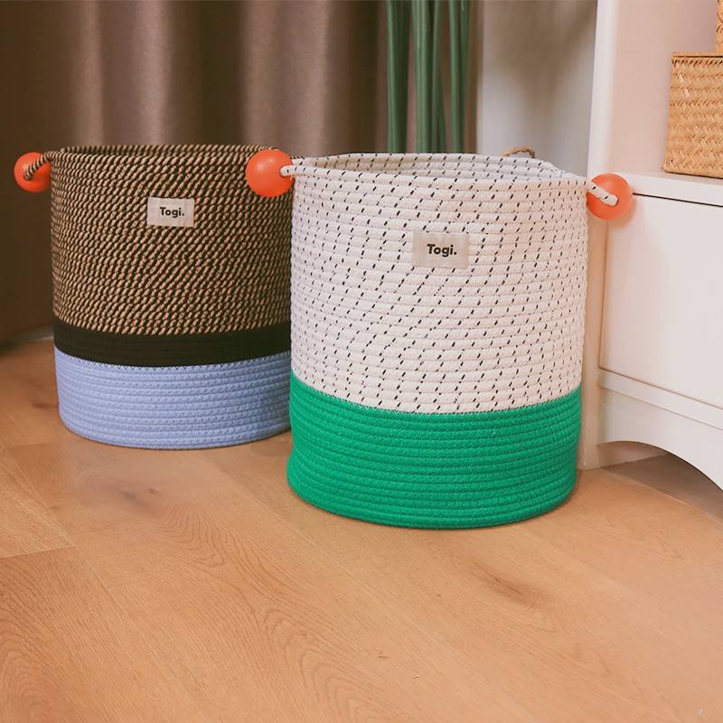 Colorful Cotton Rope Storage Basket Hand-Woven Household Cartoon Organizer for Nursery Snacks Cosmetics Toys for Laundry Use