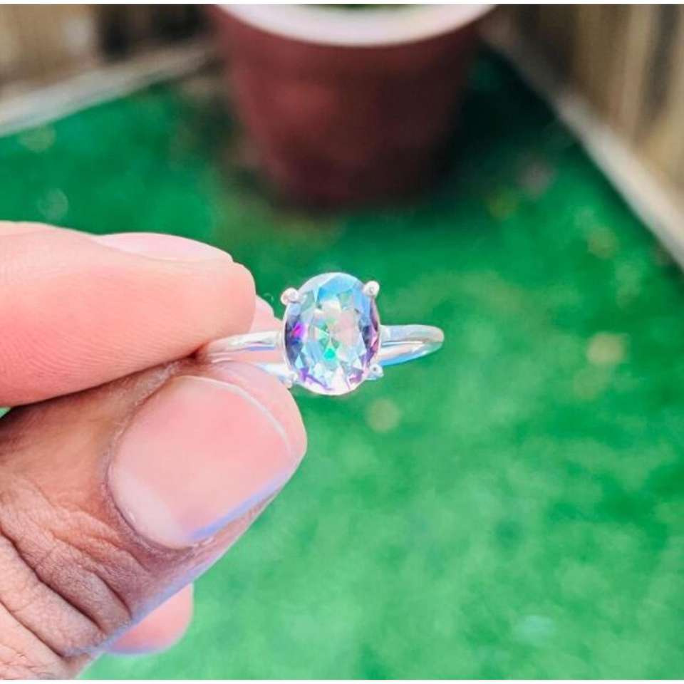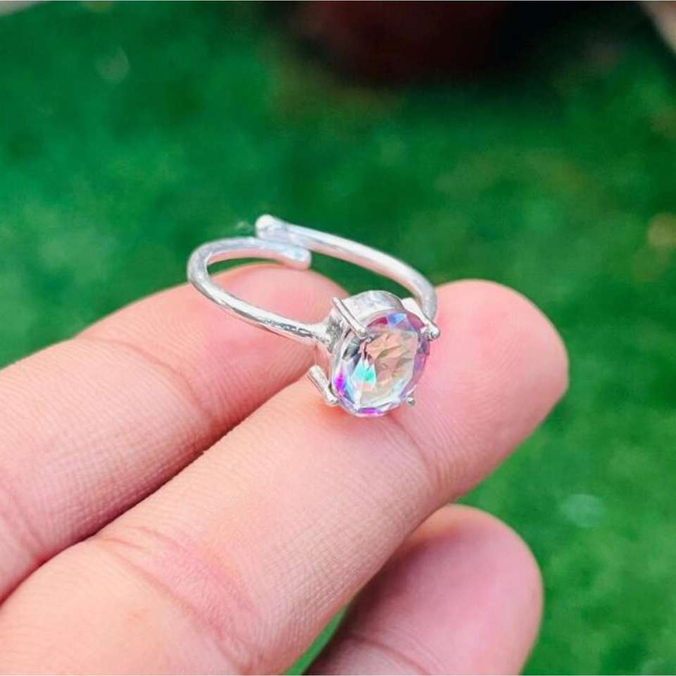 Colorful Crystal 925 Sterling Silver Rainbow Gemstone Adjustable Ring Girls Custom Made Jewelry Bulk Wholesale Romantic Party