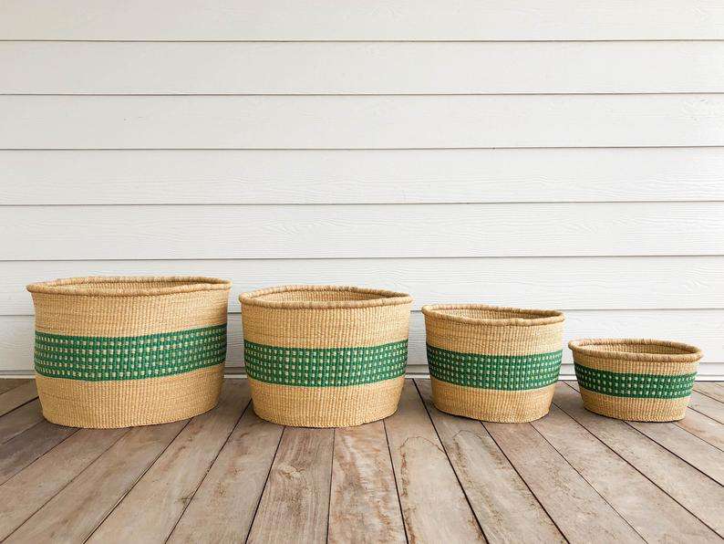 Colorful Customized Rustic Seagrass Vietnam Round Basket Storage Basket Handwoven Straw Basket for Home Organization Planter Pot