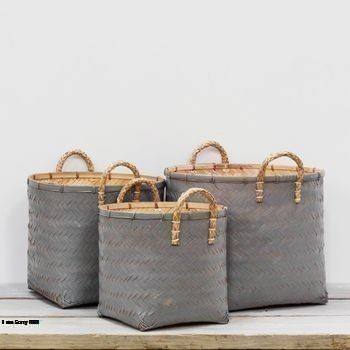 Colorful Durable Handwoven Hand-painted Bamboo Storage Basket With Handles Multifunctional Laundry Basket For Bathroom & Kitchen