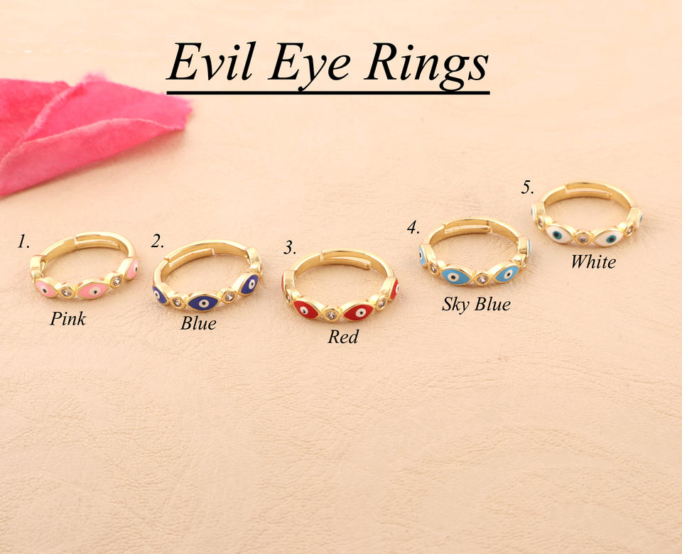 Colorful Enamel Demon Eye Finger Ring Tiny Marquise Shape Eye Round Zircon Stacking Ring Brass Gold Plated Popular Style Rings