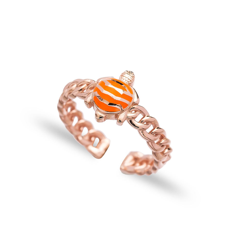Colorful Enamel Turtle Design Adjustable Ring Handcrafted Turkish Wholesale 925 Silver Sterling Jewelry