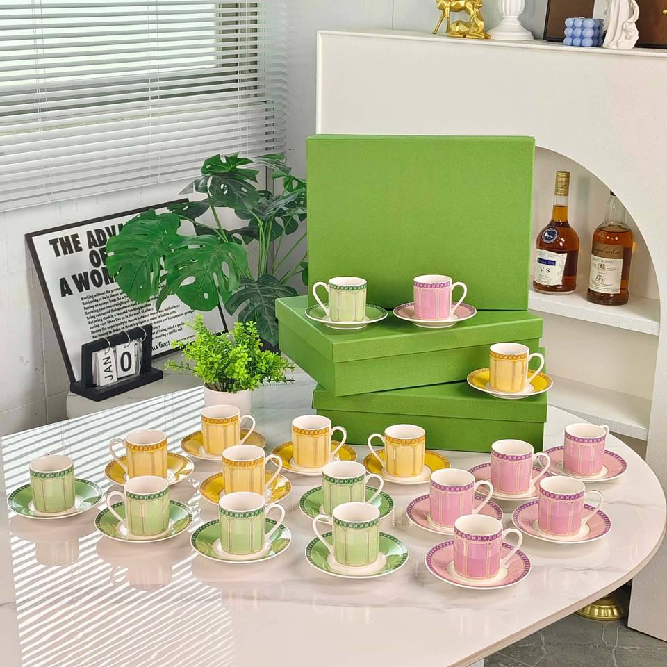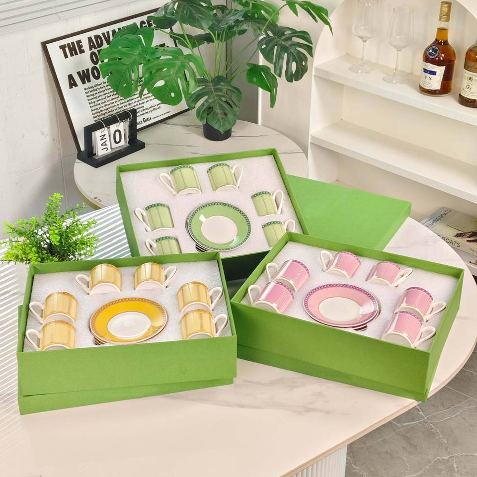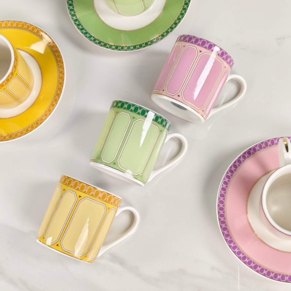 Colorful Geometric Ceramic Coffee Cup And Saucer Set 6 Pieces Bone China Espresso Cups For Home Kitchen And Afternoon Tea