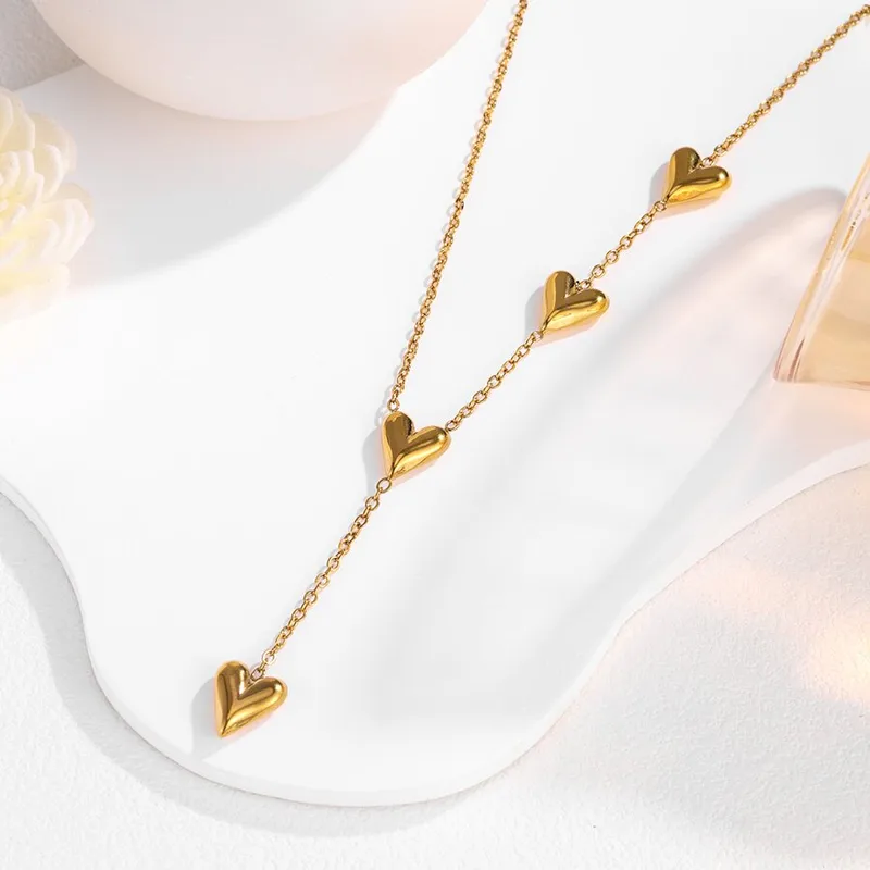 Colorful Glass Bead Chain Necklace Steel Gold Plated 304 Stainless Steel Artificial Crystal Zircon Heart Shape Jewelry for Women
