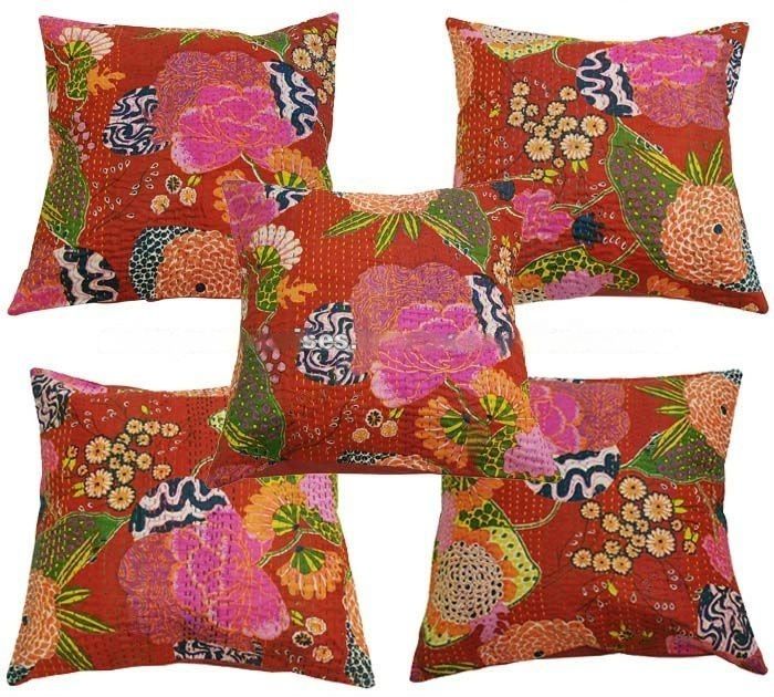 Colorful Hand Embroidered Living Room Cotton Pillow Cushion Covers for Home Decor Sofa Bed Wholesale Indian Decorative