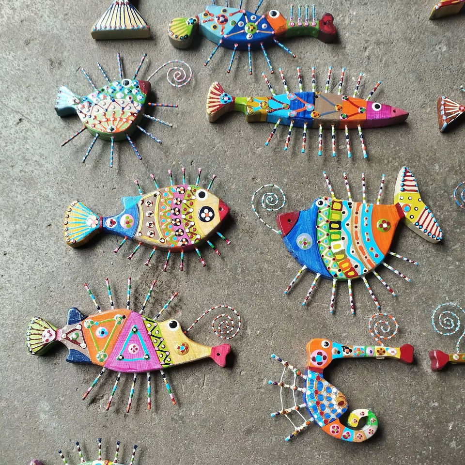 Colorful Hand-Painted Wooden Fish Decorative Figurine for Gift and Souvenir