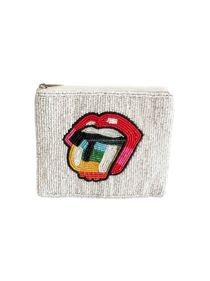 Colorful Handmade Beaded Cotton Fabric Coin Purse Set Floral Zipper Closure Embroidery Fashionable 1L Capacity Hand Flowers