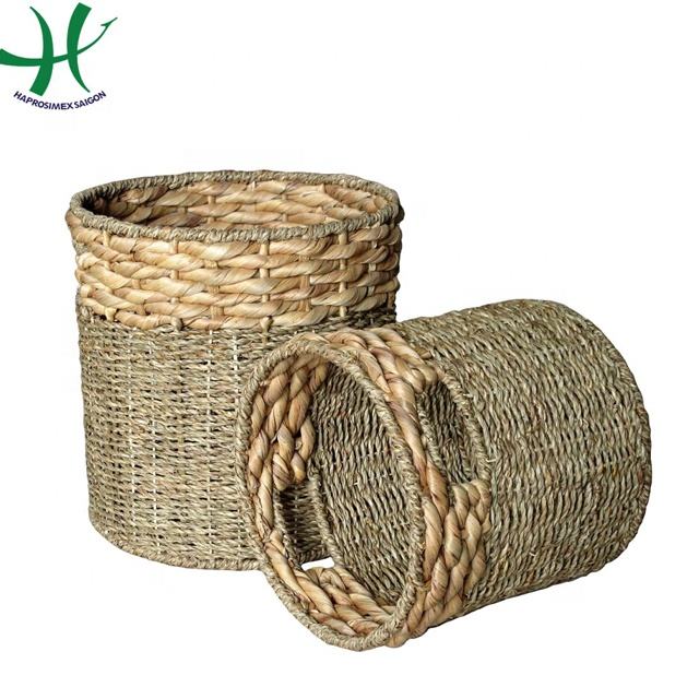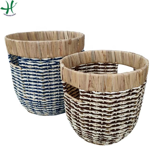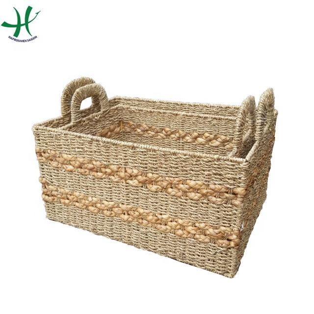 Colorful Seagrass Decorative Storage Basket Handwoven Bamboo Iron with Iron Handles for Kitchen Home Storage & Organization