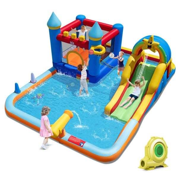 Colorful Inflatable Water Slide Bounce House with Splash Pool and Blower for Multi-Sport Games Water Amusement Facility