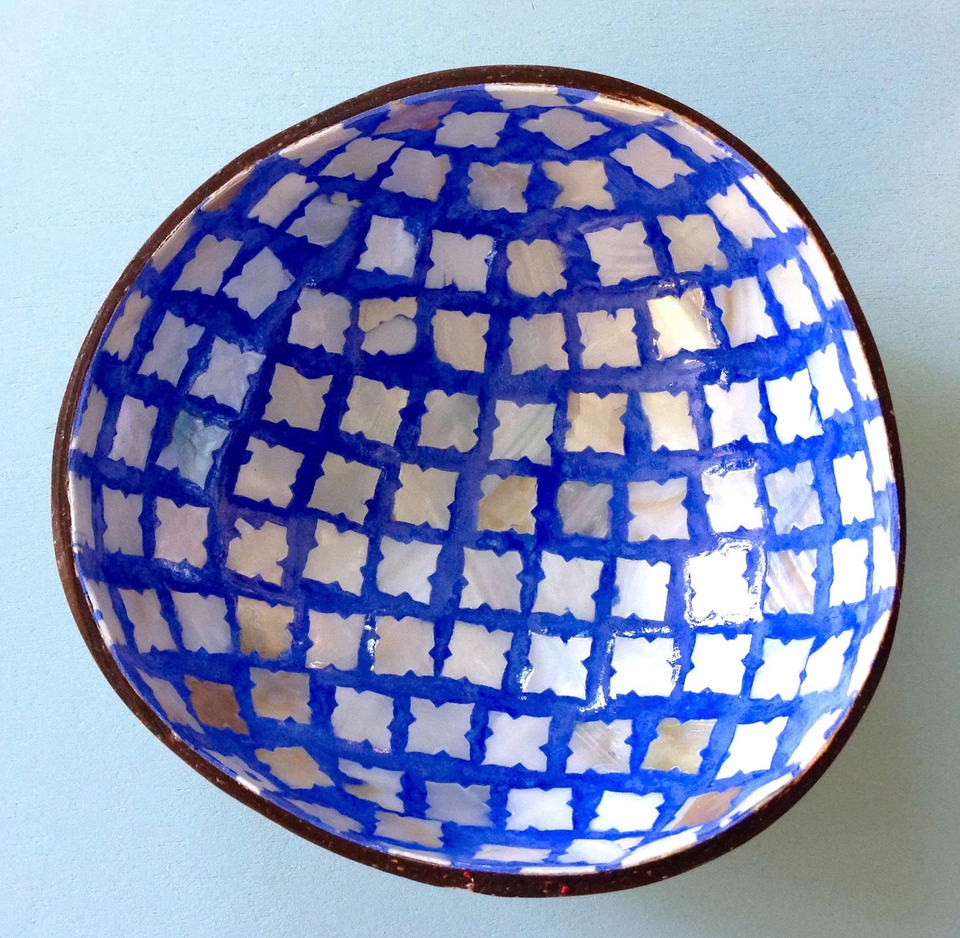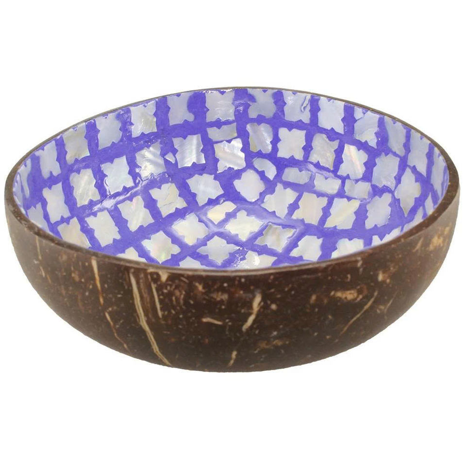 Colorful Intricate Handmade Coconut Shell Mother Of Pearl Mosaic Bowl Natural Eco Luxury Decorative Serving Bowl