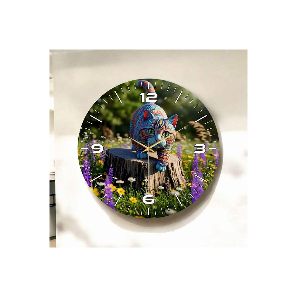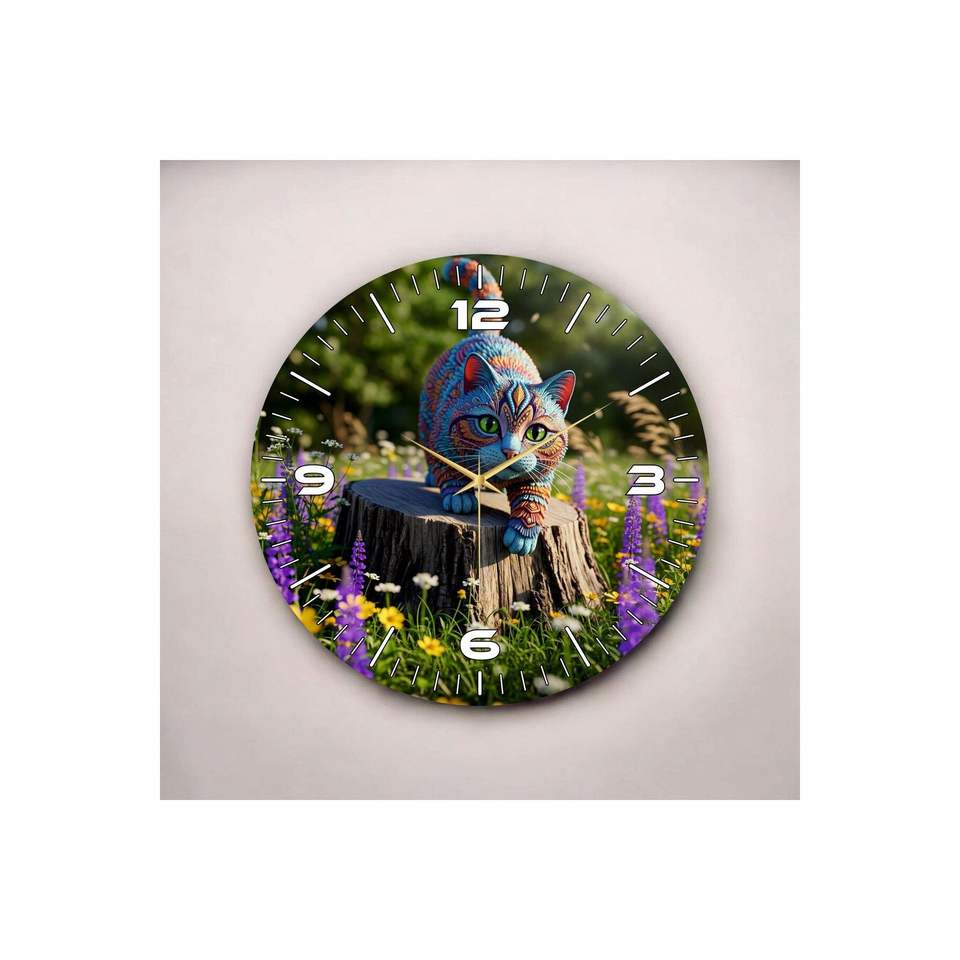 Colorful Kitten Cat Print Wooden Silent Table Wall Clock 50cm Patterned Gift Eye-Catching Timepiece