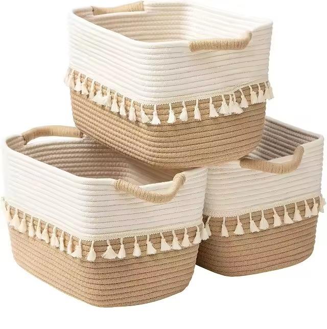 Colorful Macrame Large Size Baskets Stylish Cotton Rope Storage Organizer Ideal For Home Laundry Toys And Room Decor Use