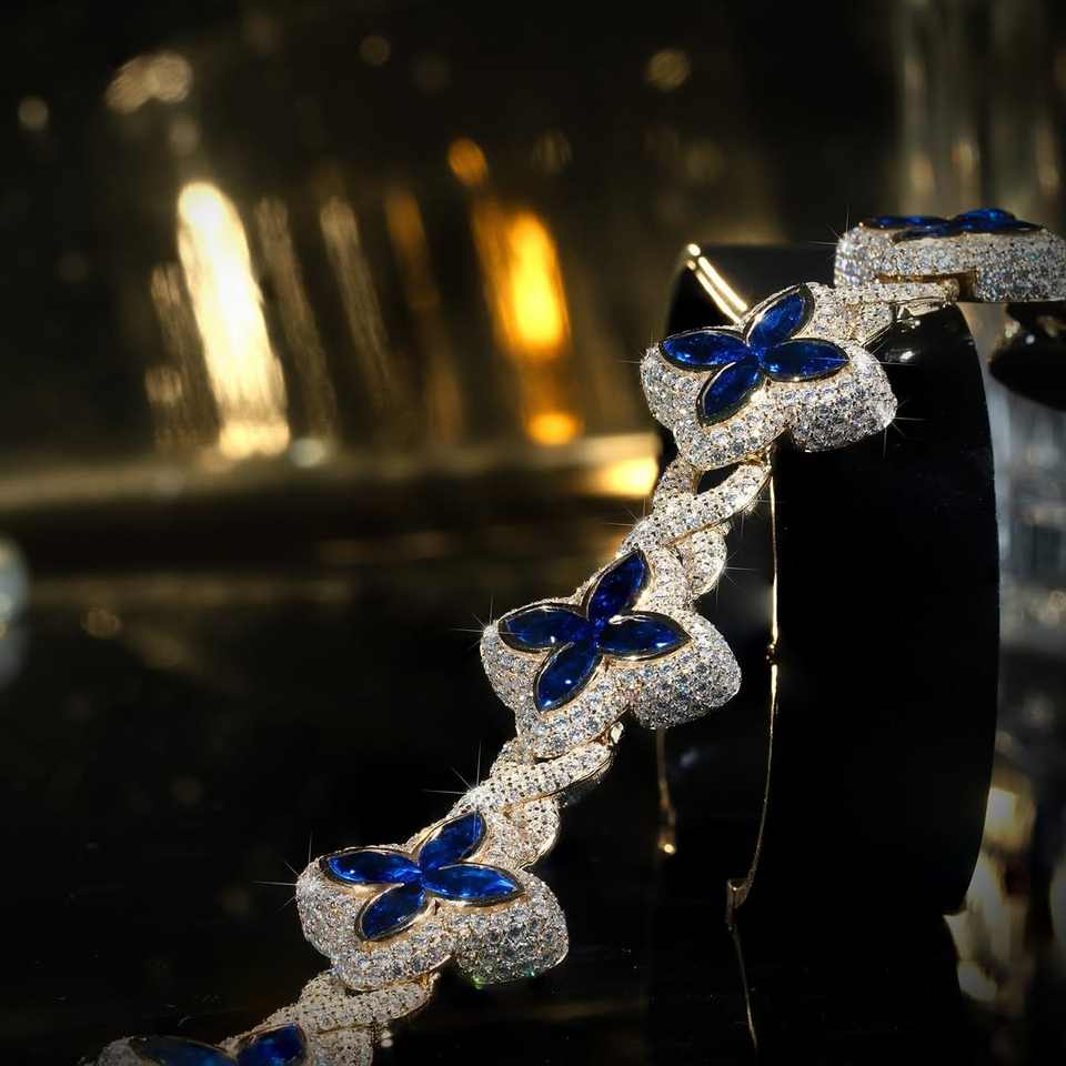 Colorful Marquise Eye Moissanite Four Leaf Clover 925 Silver Cuban Chain Bracelet Men's/Women's Jewelry Bracelet Bangles Gift
