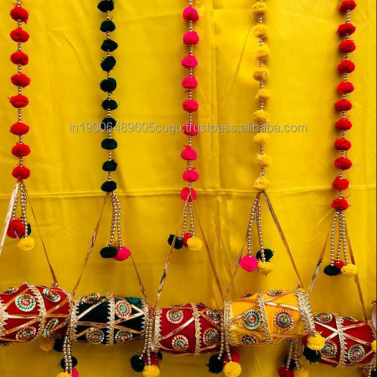 mini dholki pompom garland diwali home decor entrance decoration