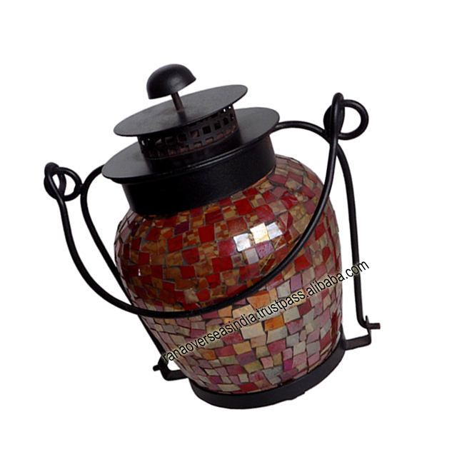 Colorful Mosaic Glass Hanging Candle Lantern