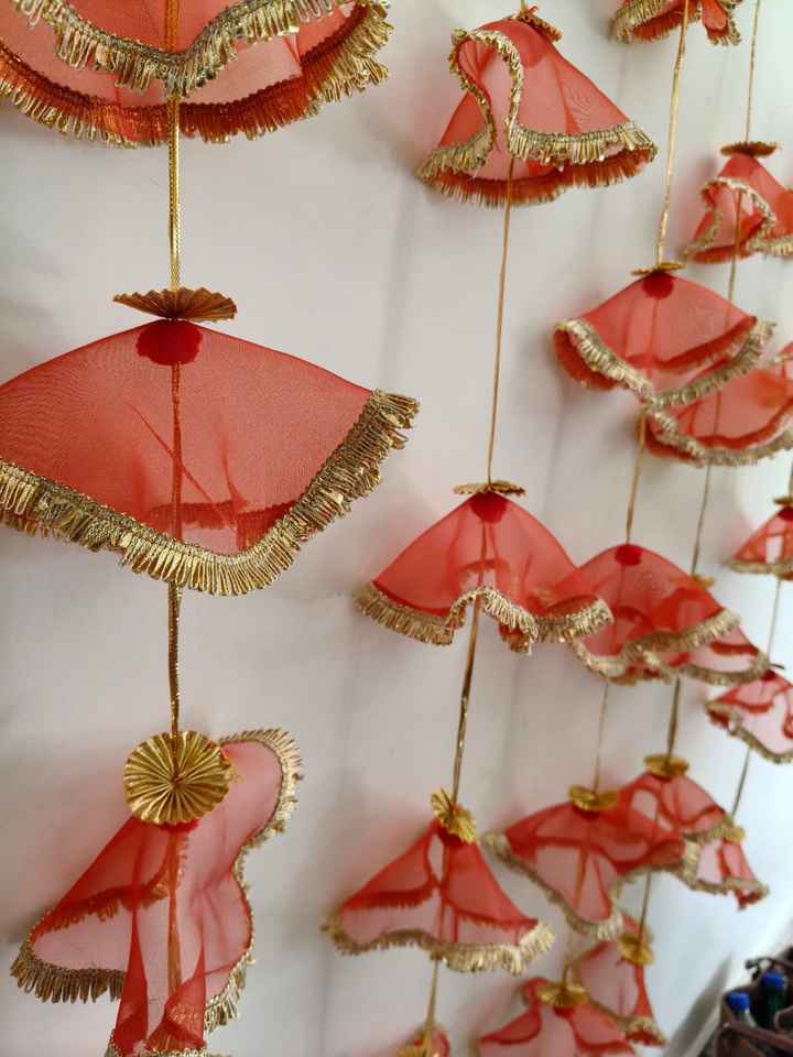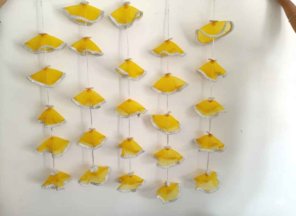 Colorful Net Gota Hanging Garland Indian Wedding Backdrop Strings for Haldi Mehndi Sangeet Eco-Friendly Gota Fabric Tassel Decor