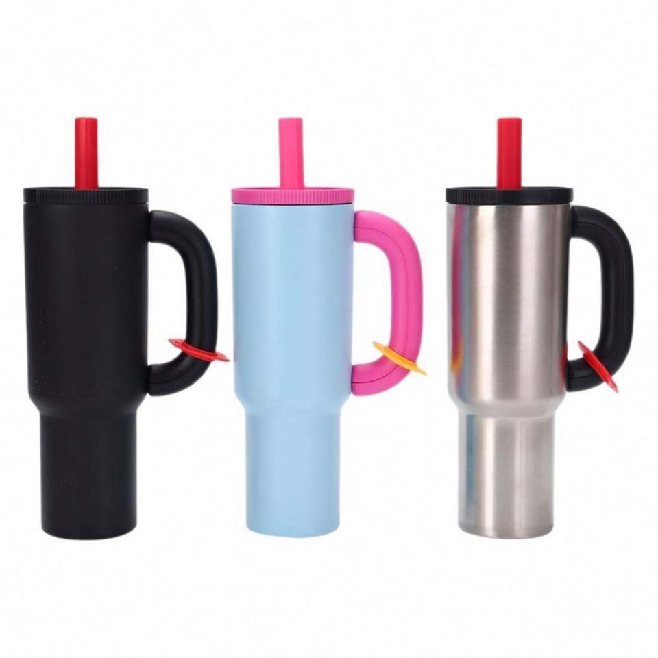 Colorful New Design Thick Handle Customized 304 Stainless Steel Mug Vacuum Insulated Tumbler With Straw Outdoor Use