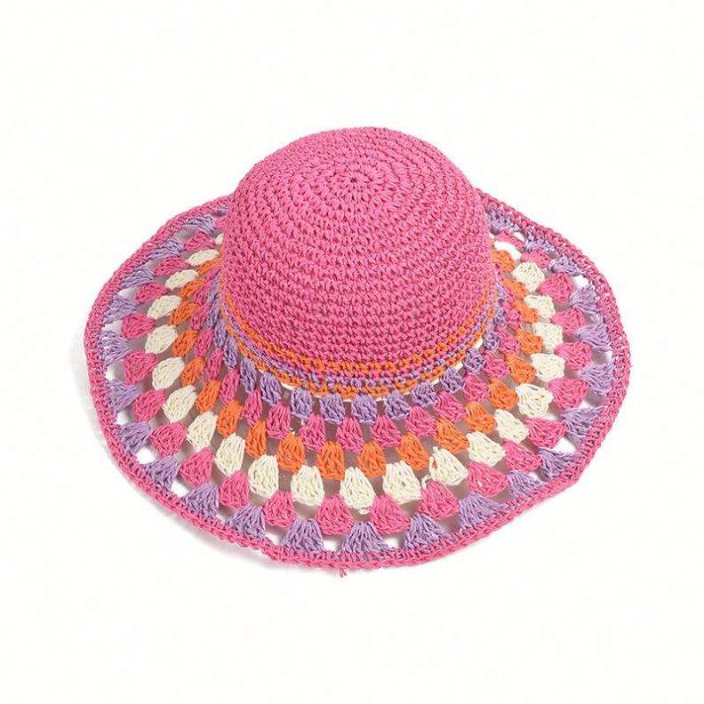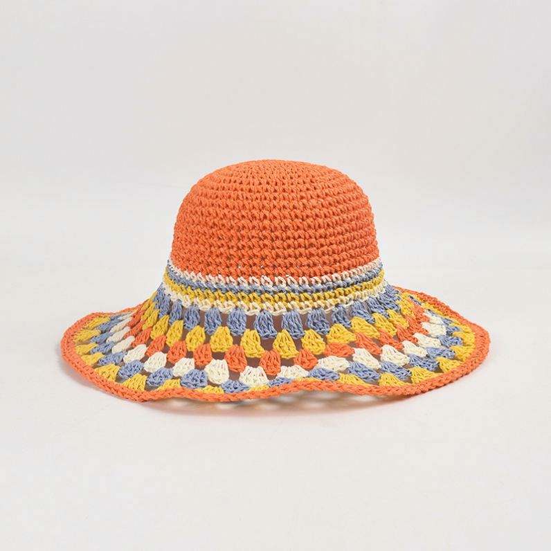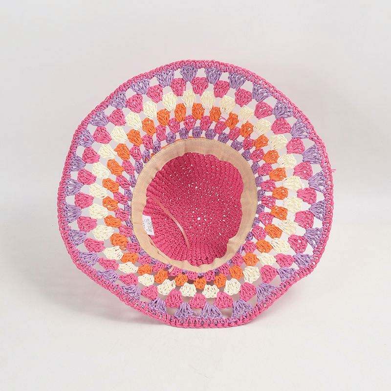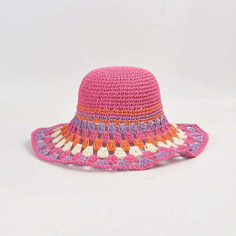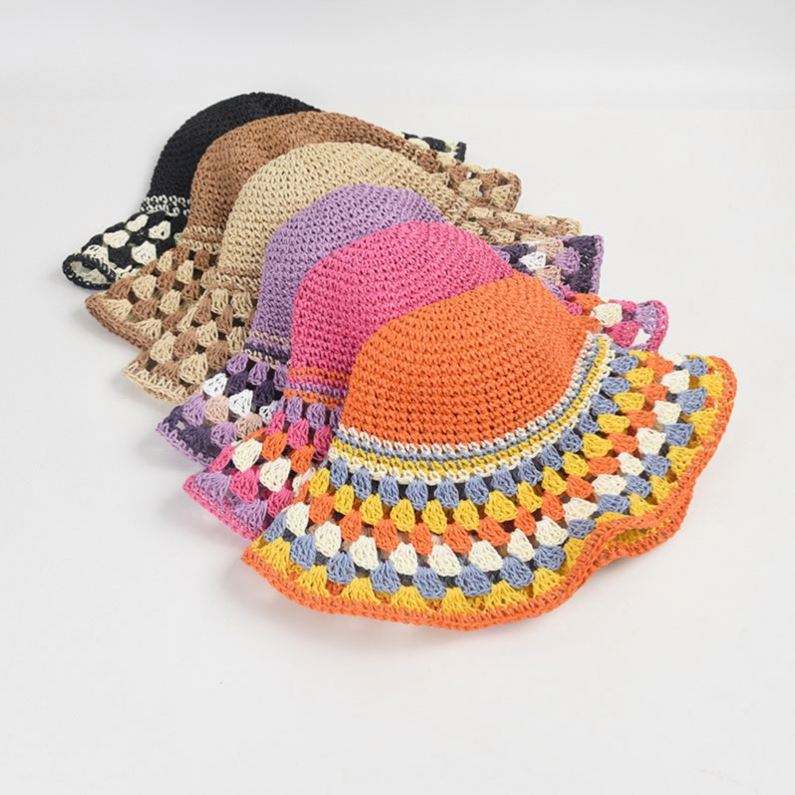 Colorful Paper Crochet Paper Straw Bucket Hat Female Summer New Holiday Large Brim Beach Leisure Sunshade Bucket Hat Straw