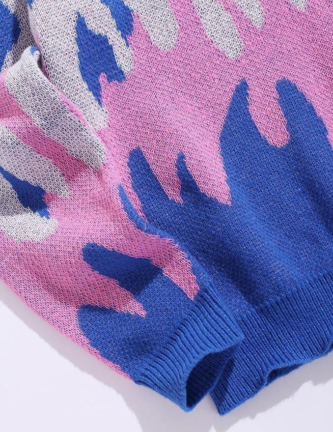 Colorful Patchwork Cardigan Unisex Cozy Pullover Streetwear Aesthetic Jumper Soft Warm Winter Sweater Polyester/Cotton