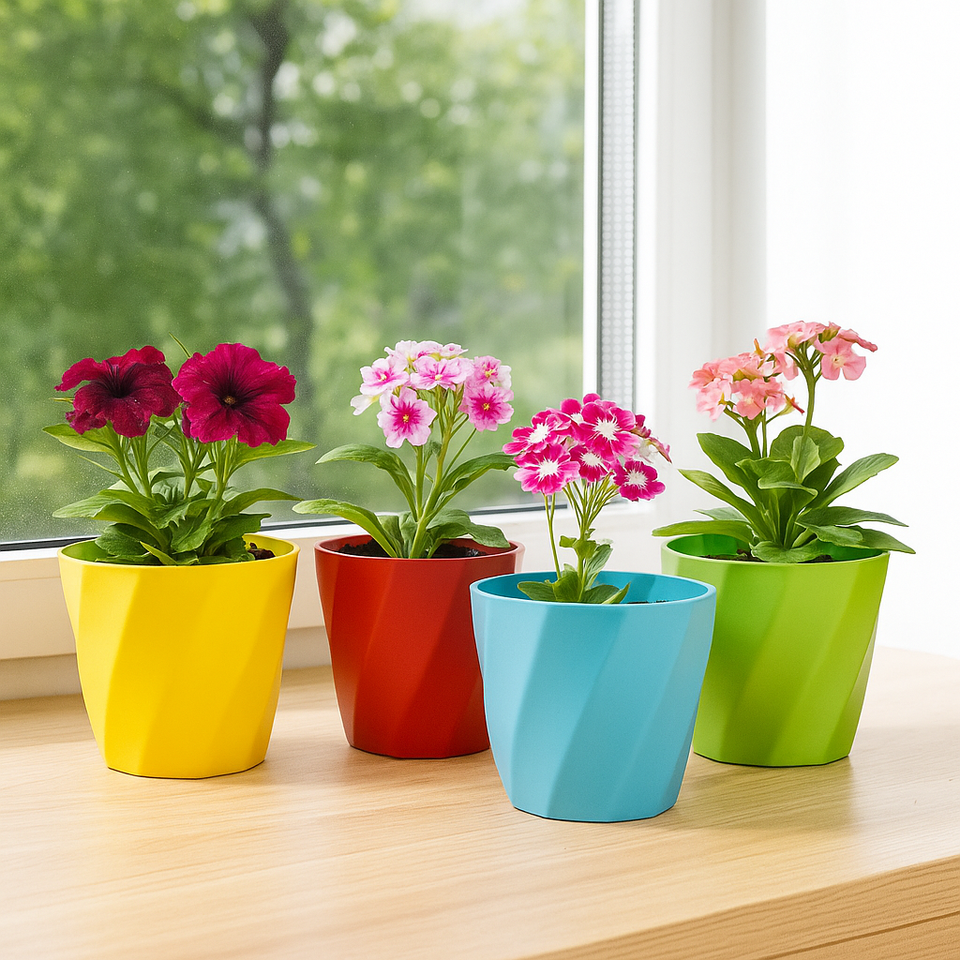 Colorful Plastic Spiral Flower Pot Modern PP Planter for Indoor Outdoor Decoration Durable Eco- Friendly Material Medium Size