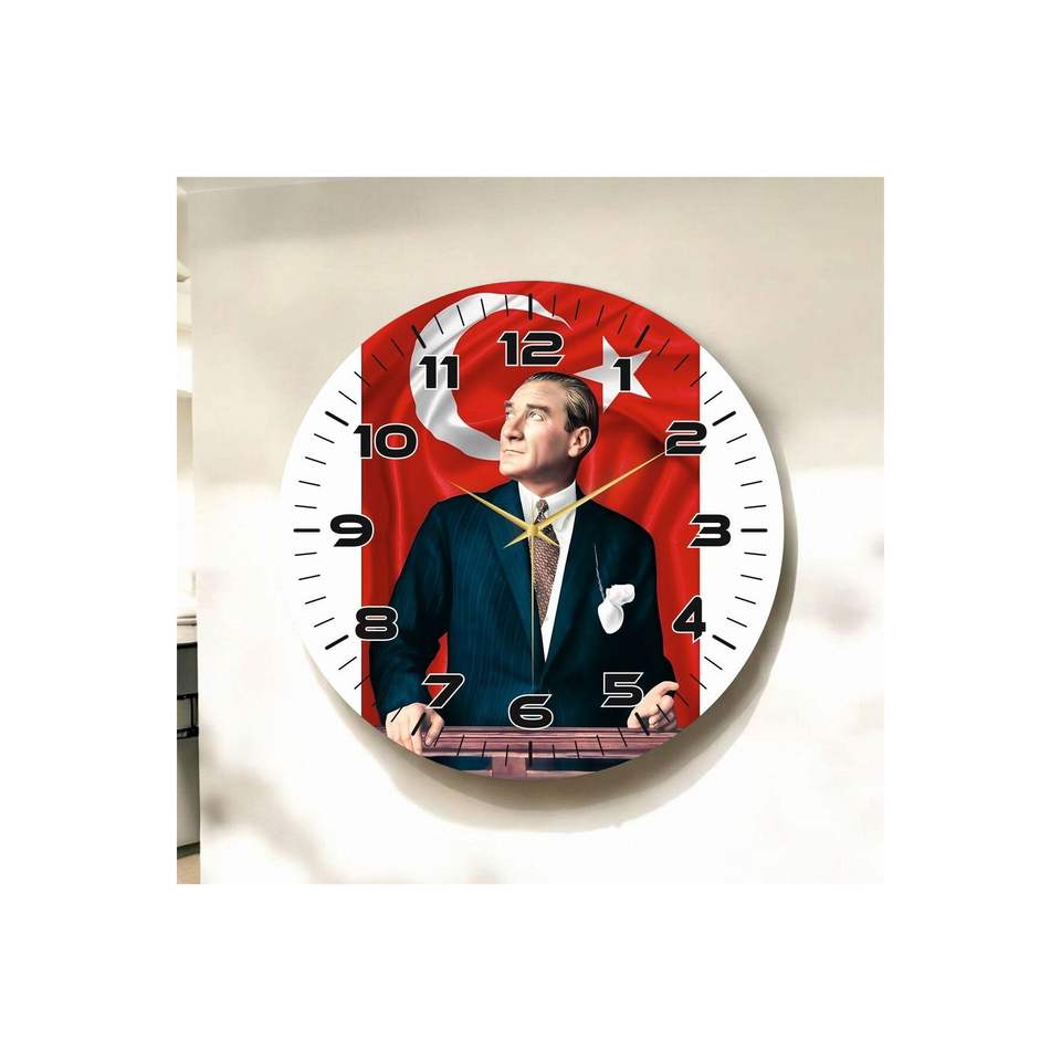 Colorful Print Atatürk Turkish Flag Pattern Wooden Table Wall Clock 50cm Silent Number Gift