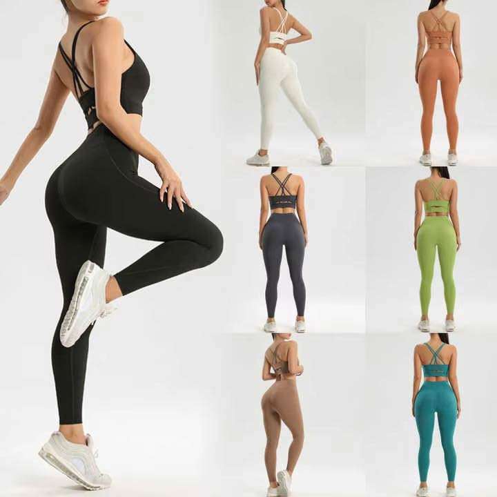 Colorful Seamless Yoga Suits Quick Drying High Waisted Running Fitness Sets High Impact Sports Bra Peach Buttocks Leggings Set
